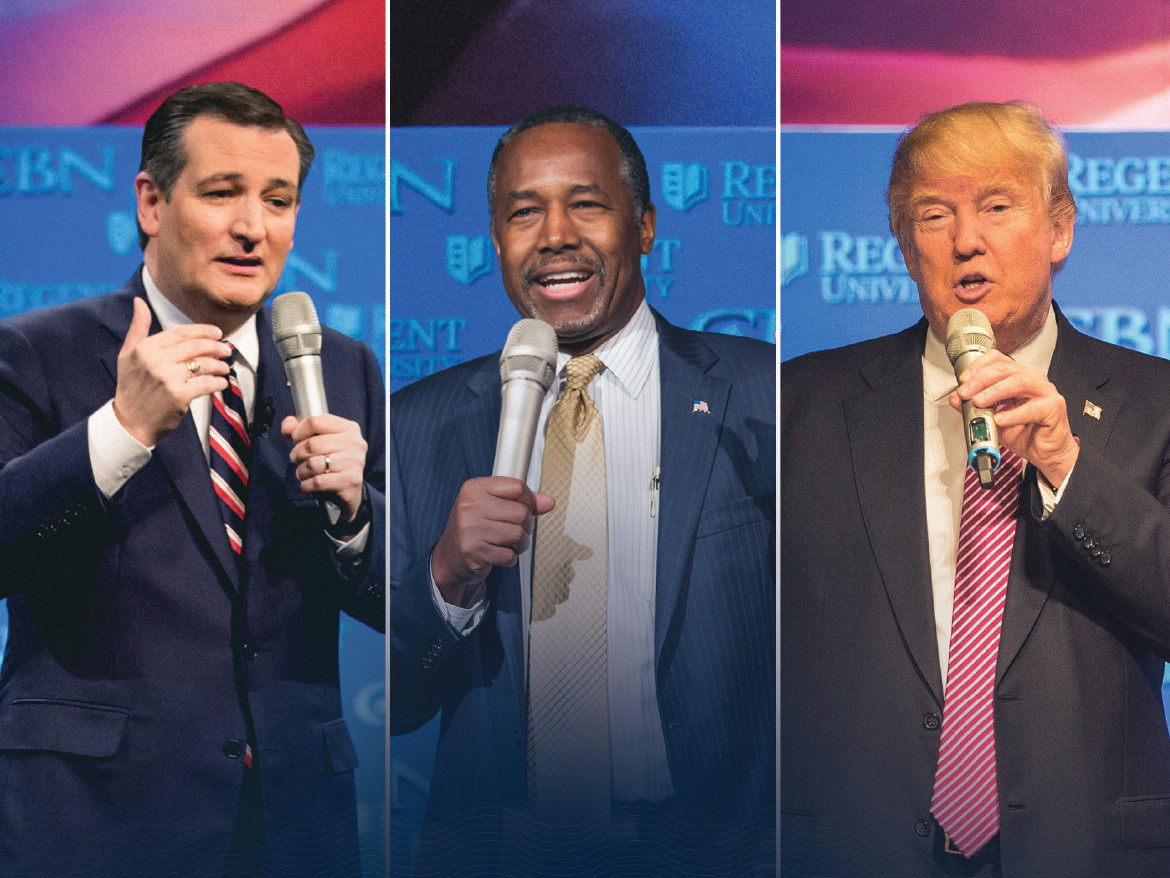 Frontrunner Donald Trump, Senator Ted Cruz and former Regent trustee Dr. Ben Carson chose the final days before the important Super Tuesday primaries and caucuses on March 1 to make their case to voters by appearing at separate Presidential Candidate Forums. The university welcomed former candidate and Florida governor Jeb Bush in October, and current candidate and Ohio governor John Kasich in November.