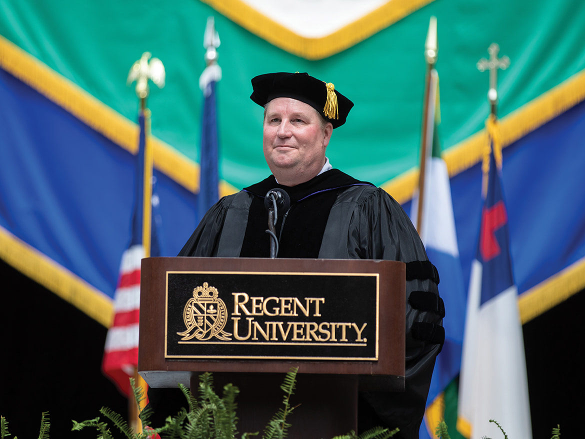Regent’s 2019 Alumnus of the Year wasn’t expecting to be recognized by the university for his work in theatre arts. Minutes before his commencement address to graduates, Bruce Long (SCA ’01) told Impact, “I’m still a little surprised because I’ve never considered myself someone who might be worthy of this distinction. I’m just doing what I believe God has called me to do.”